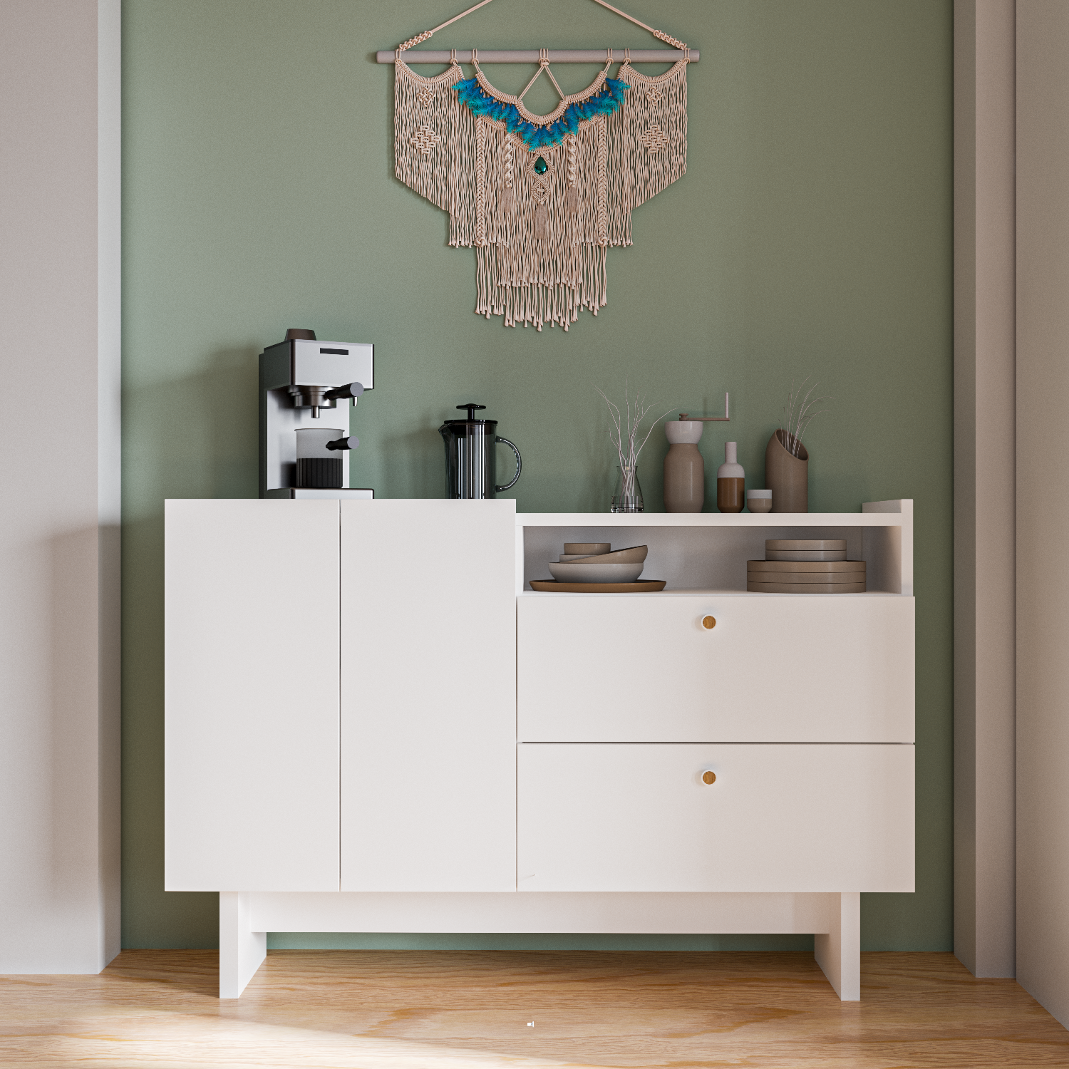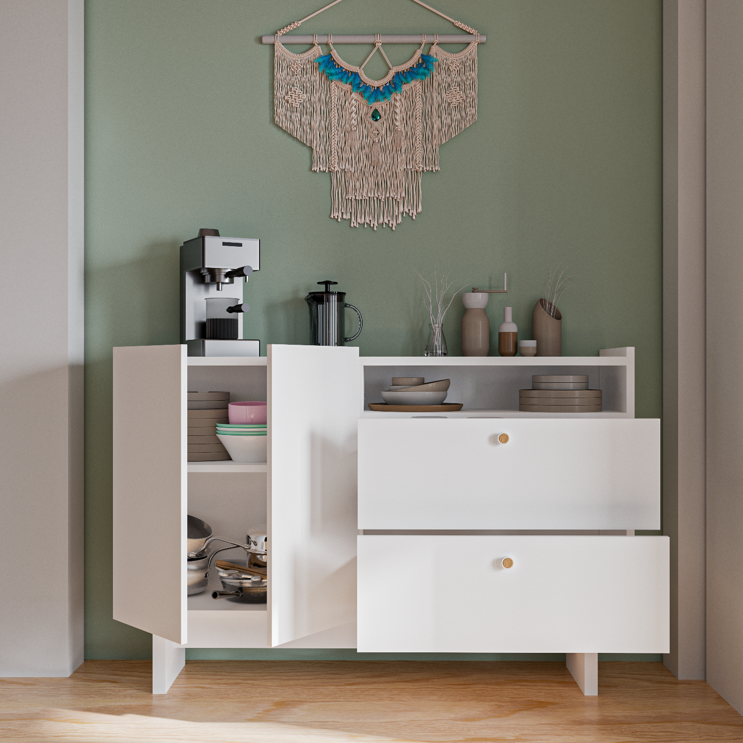 Minimalist detaylarla tasarlanmış bu modern konsol; salonda, mutfakta ya da TV ünitesi olarakrahatlıkla kullanılabilir.