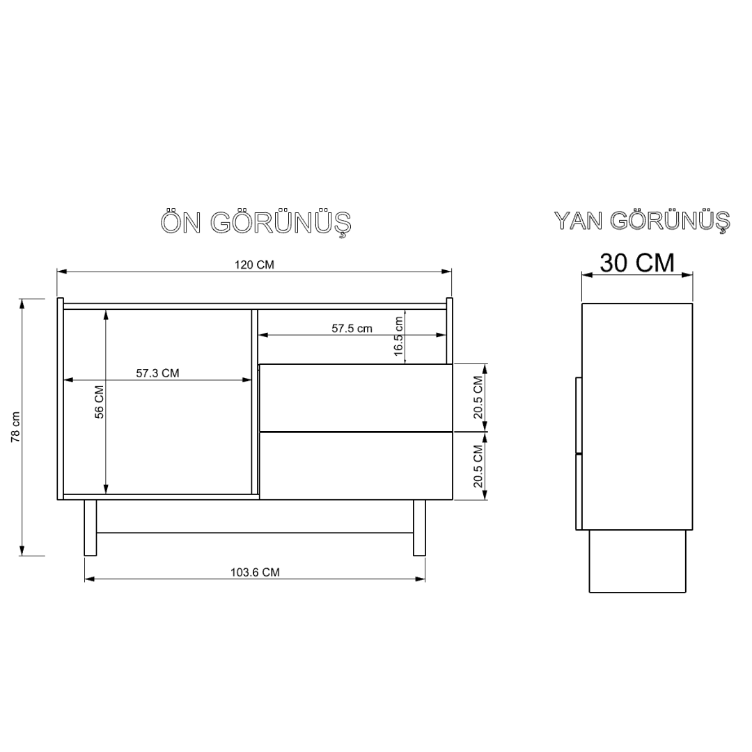 Ölçüler:Genişlik: 120 cm | Derinlik: 30 cm | Yükseklik: 78 cm