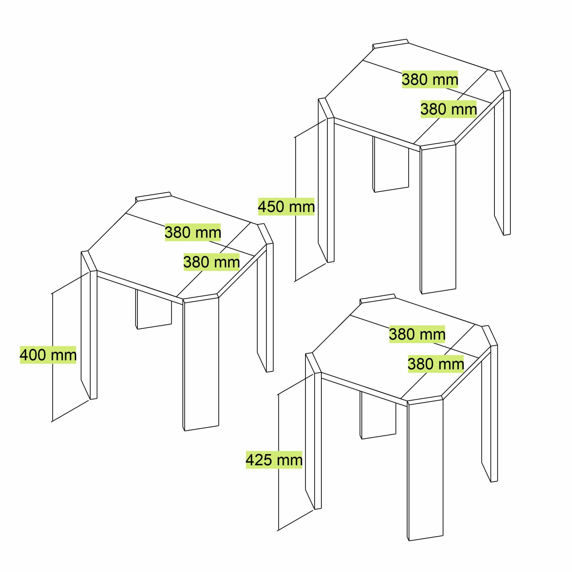 Doğal görünümlü traverten deseni ve iç içe geçen 3'lü yapısıyla, evinize hem estetik hem de fonksiyon katacak.