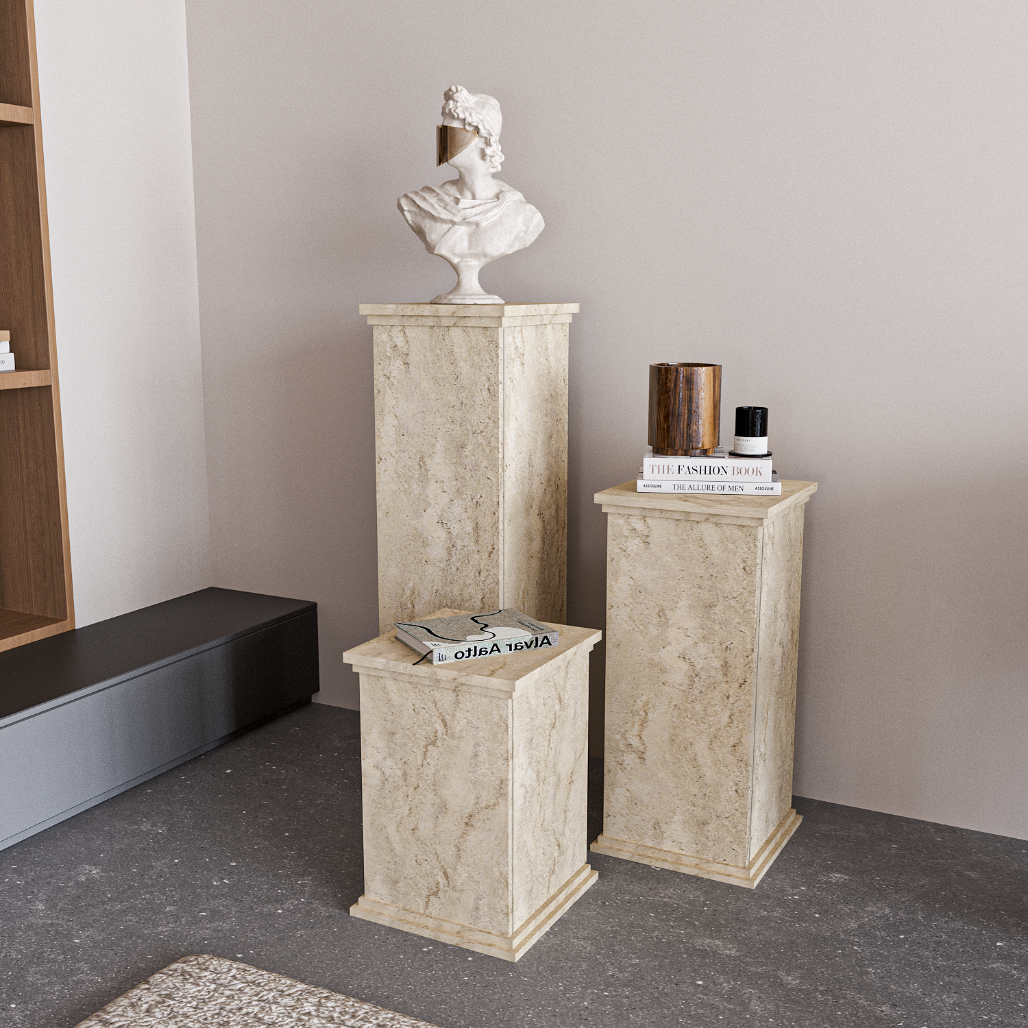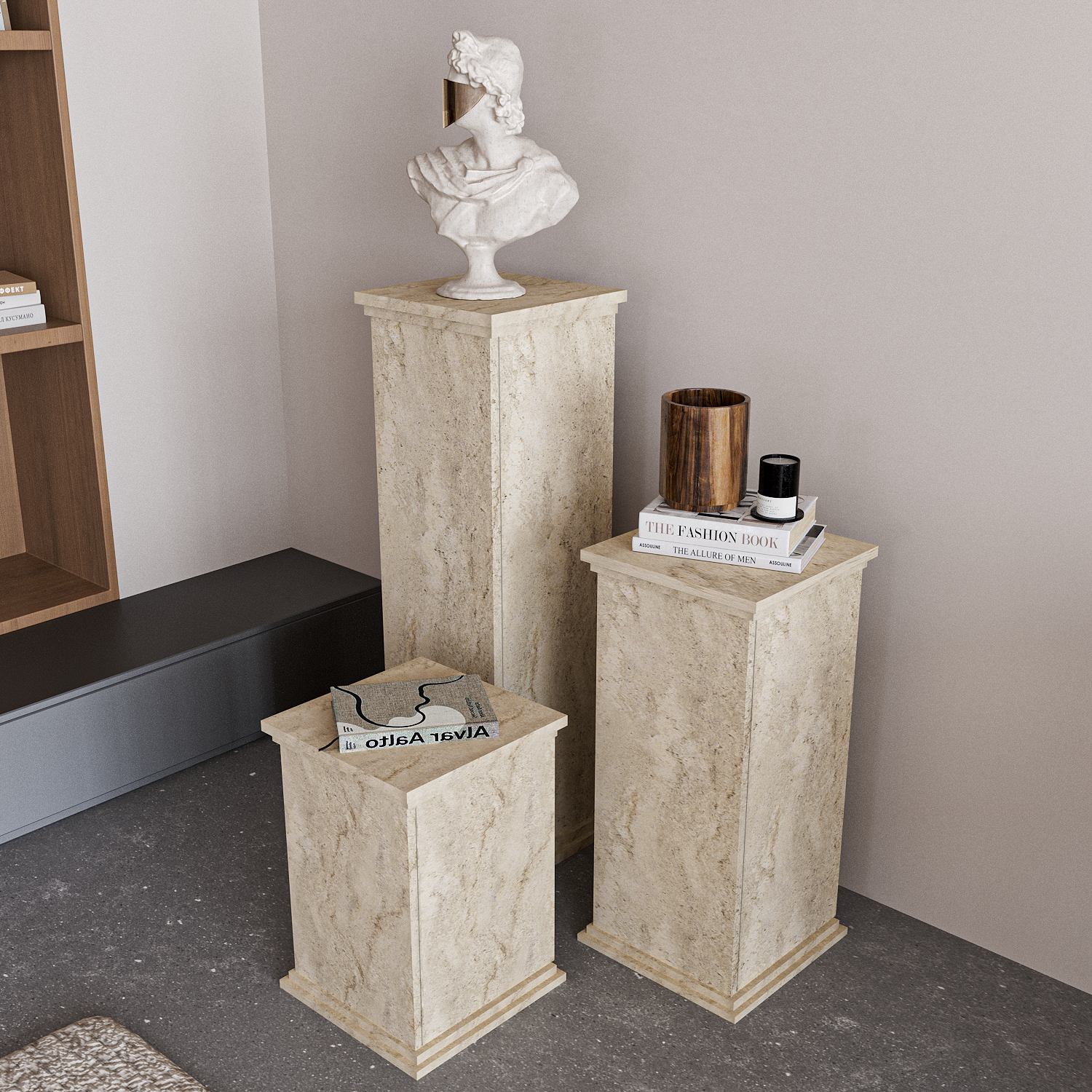 Diana Lahit, hem dekoratif objeolarak kullanılabilen hem de fonksiyonel saklama alanısunan şık bir üründür. Traverten görünümlü yüzeyive gerçek dokulu yapısıyla bulunduğu ortama doğal ve estetik bir havakatar.