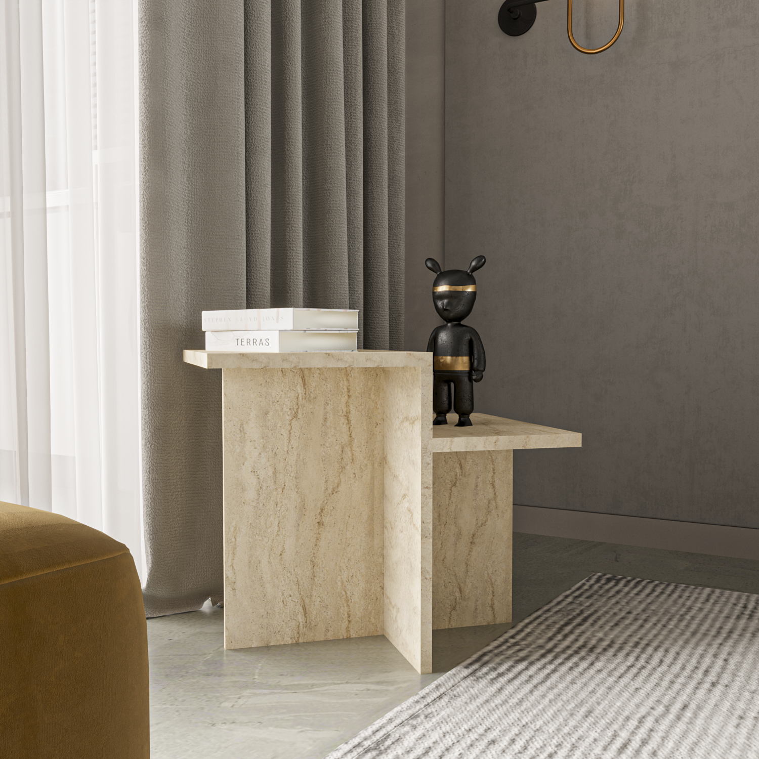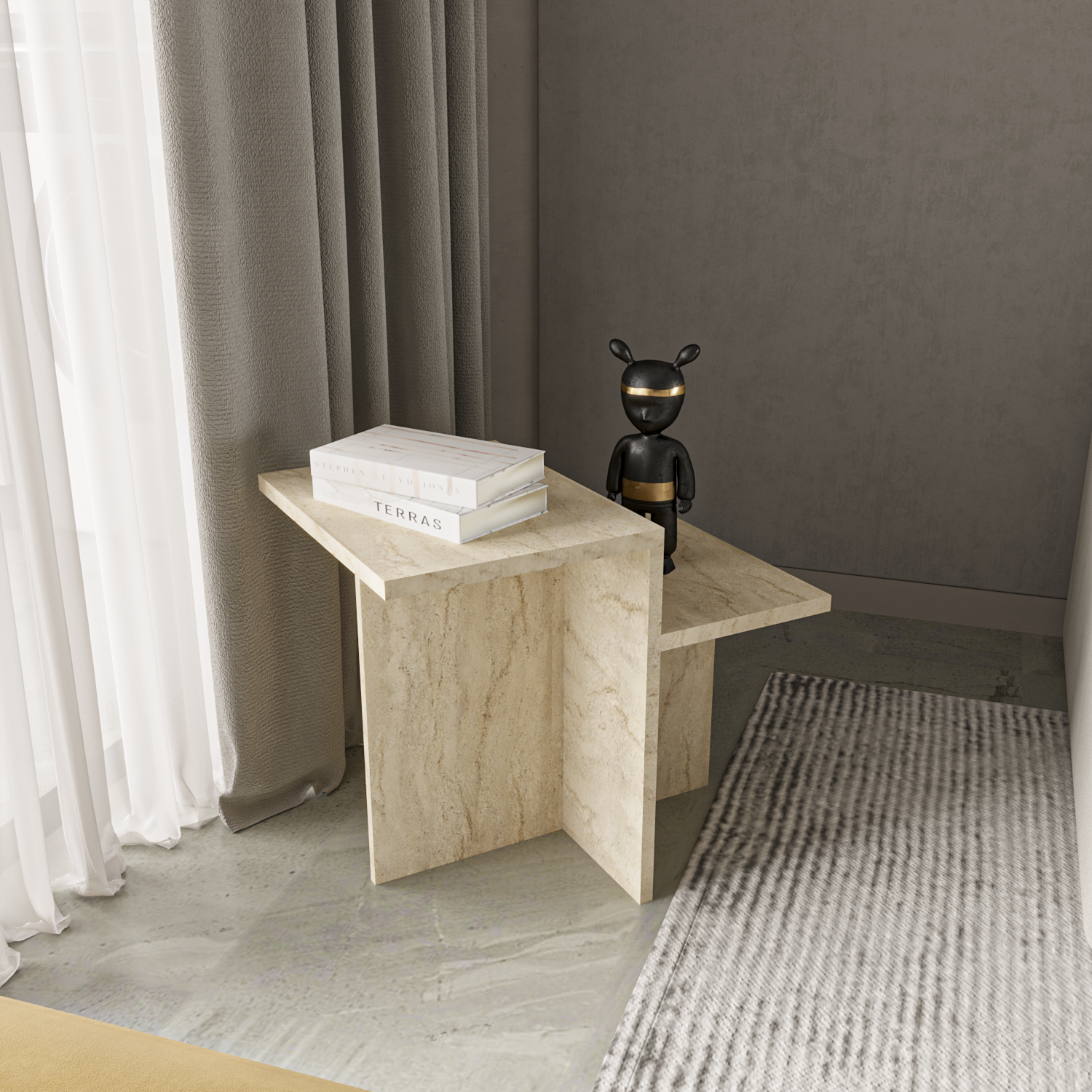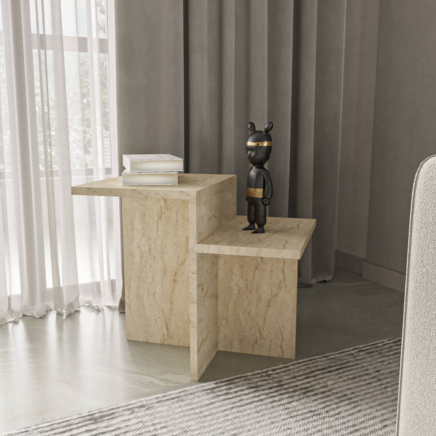 Doğal traverten desenli yüzeyiylehem sade hem de modern bir görünüm sunar. Pinterest'te sıkça gördüğünüz o estetik alanların yıldızı Diana, şimdi sizlerle!