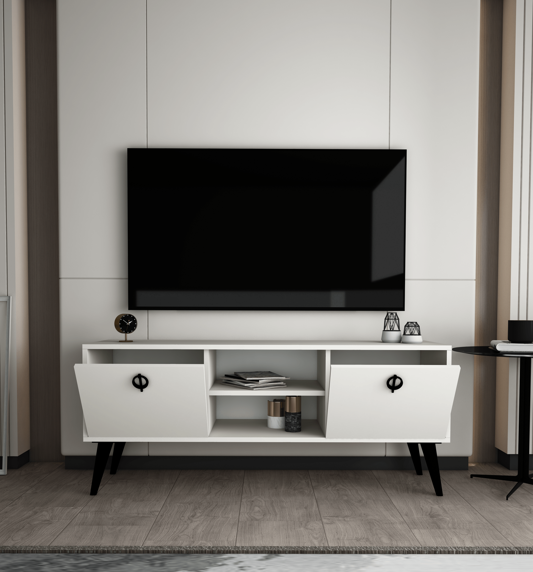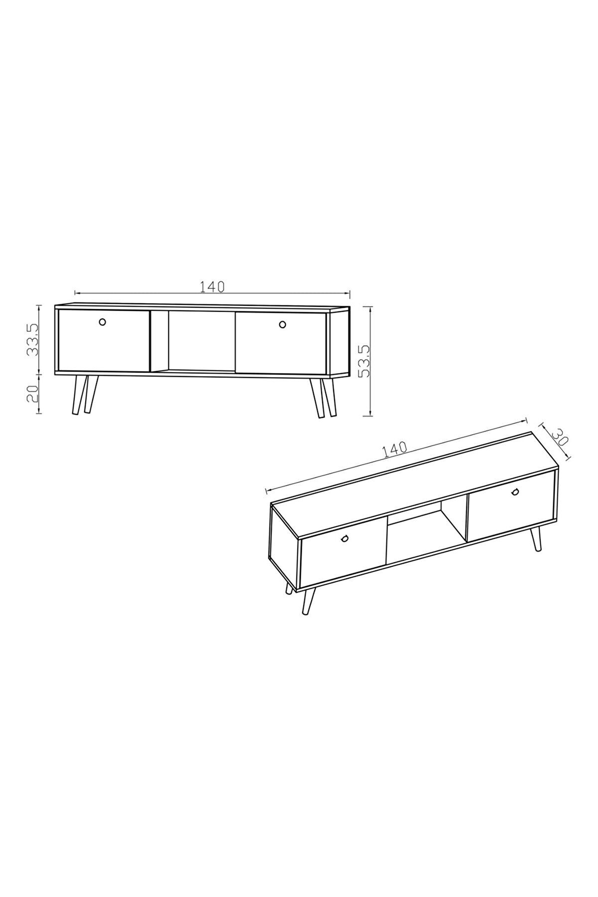 Kaya Tv Ünitesi 140 Cm 2 Kapaklı Tv Sehpası, Ekonomik Tv Sehpası, Ortası Raflı