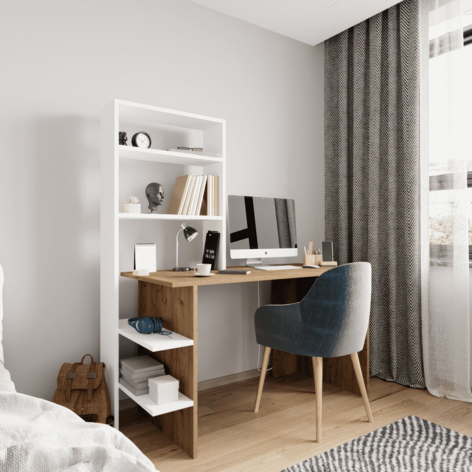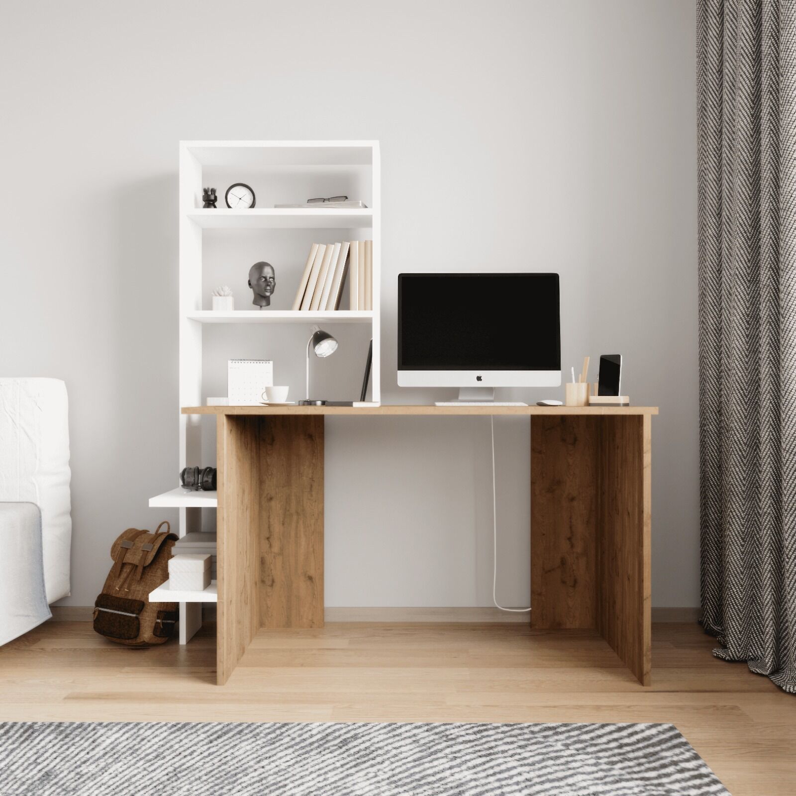 Mobilya Beyaz Kitaplıklı Çalışma Masası , Ders Çalışma Masası , Raflı Çalışma Masası,