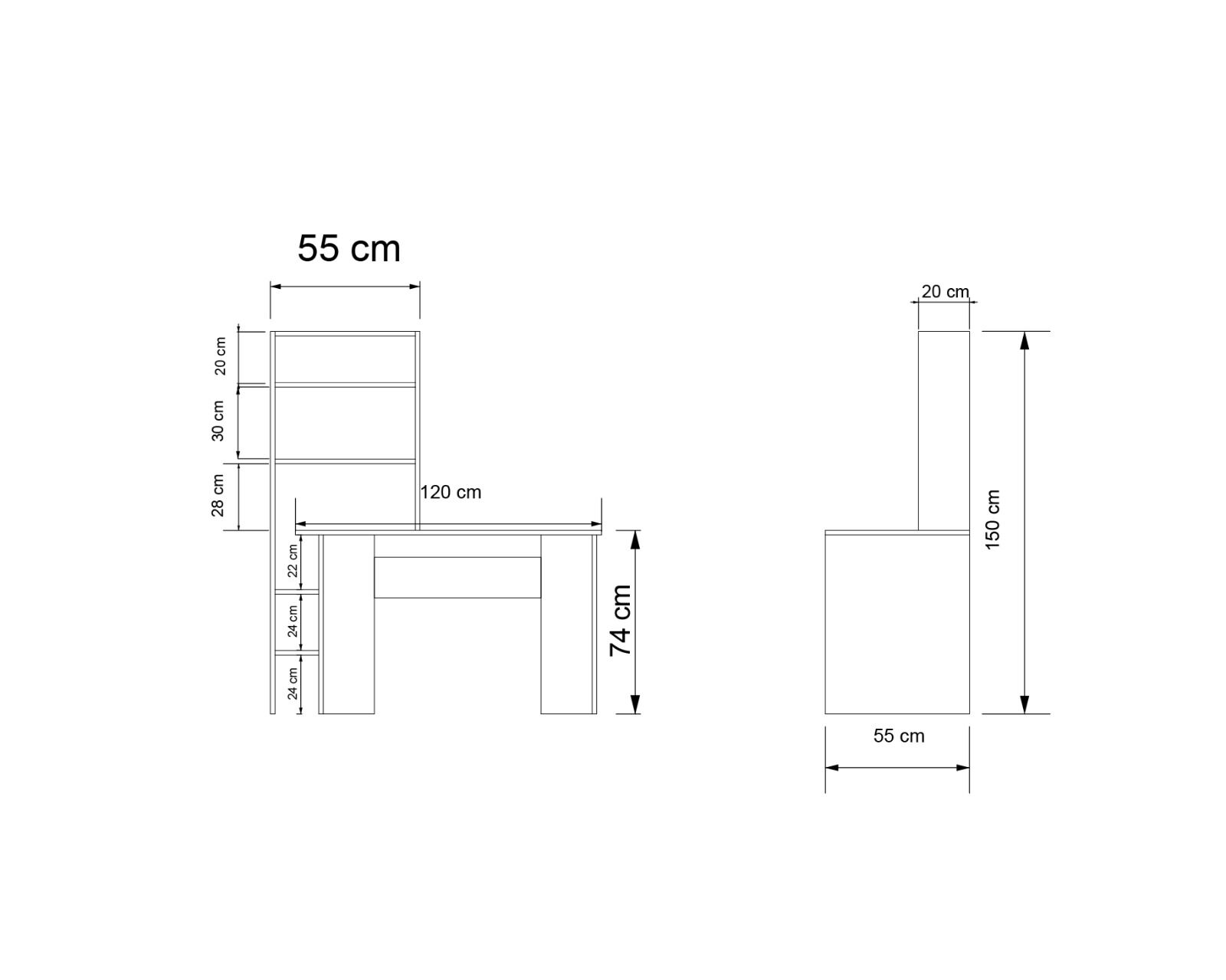 Blok Genişlik: 120 cm Yükseklik: 74 cm Derinlik: 55 cm
