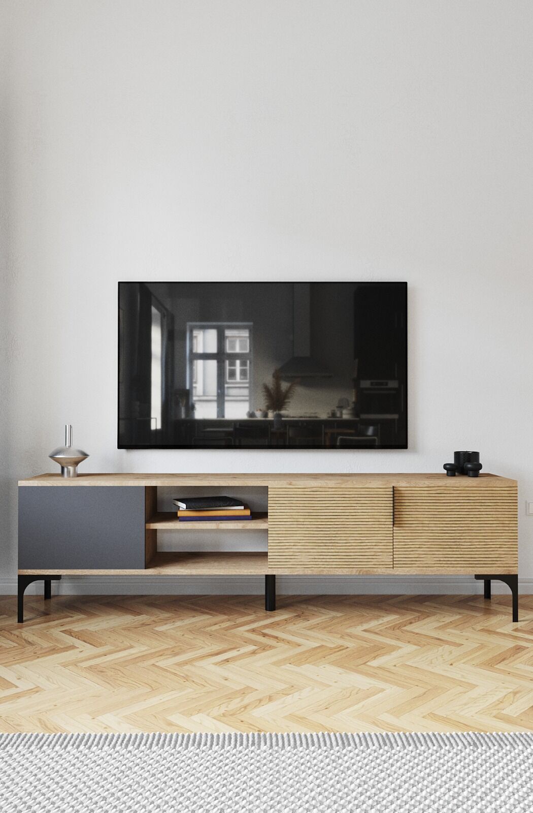Tarz Raflı 180 Cm Metal Kulp Tv Ünitesi (ANTRASİT-YUNUS)