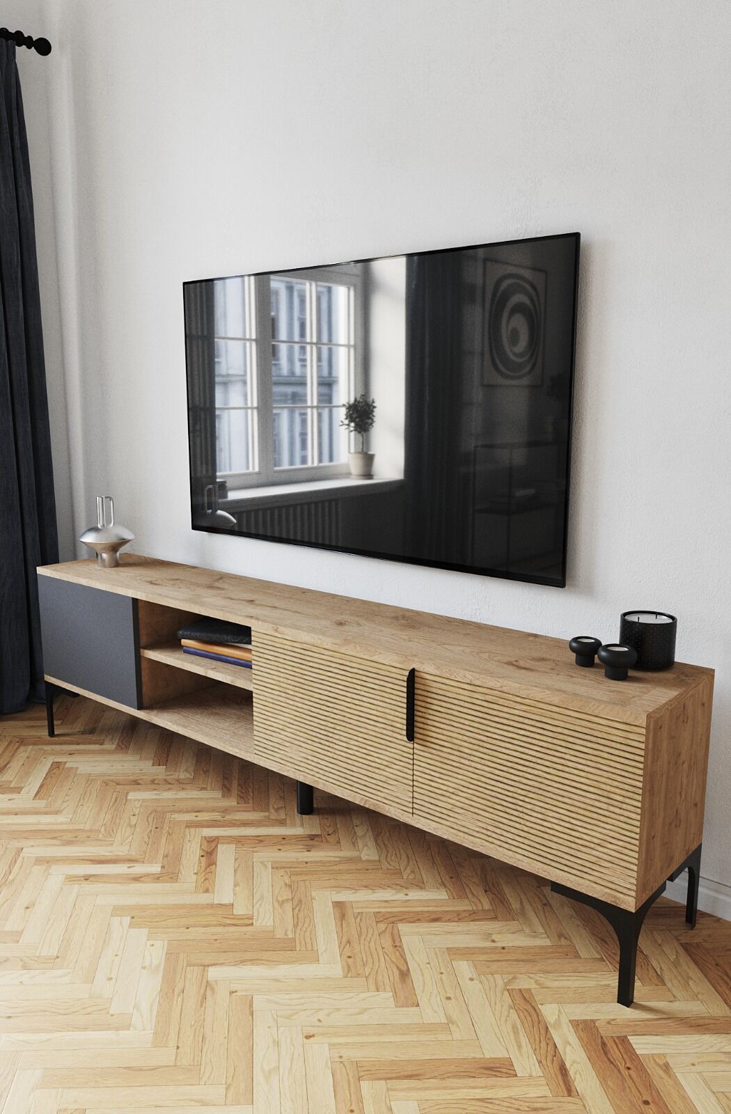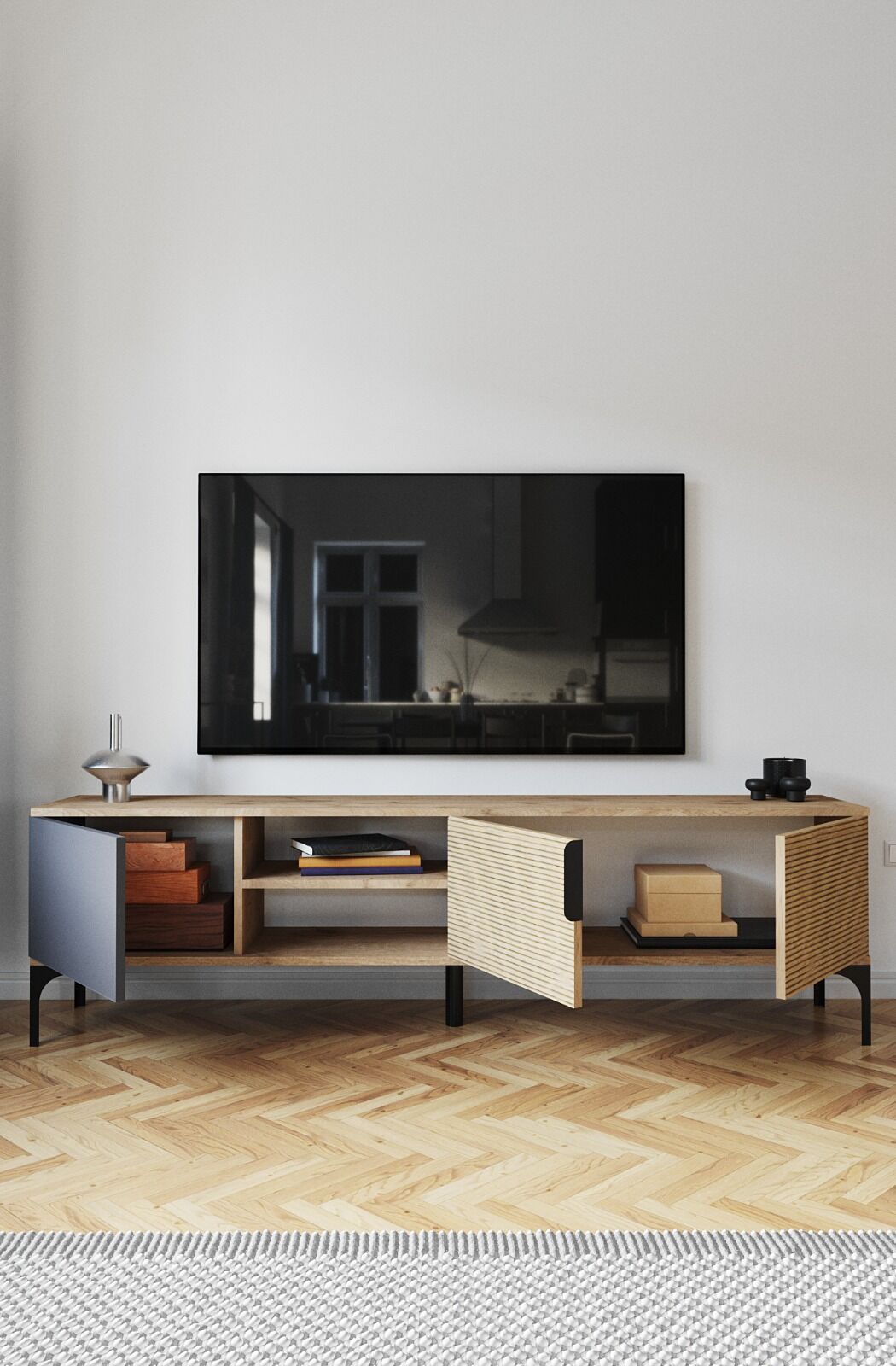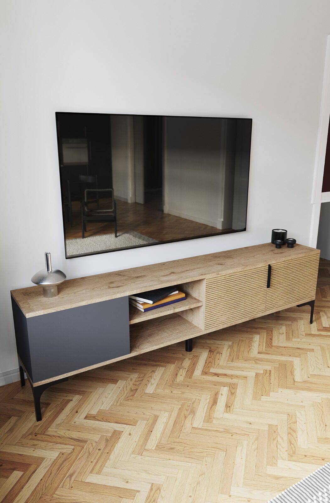 - 180 cm genişlik– Büyük ekran TV’ler için ideal alan