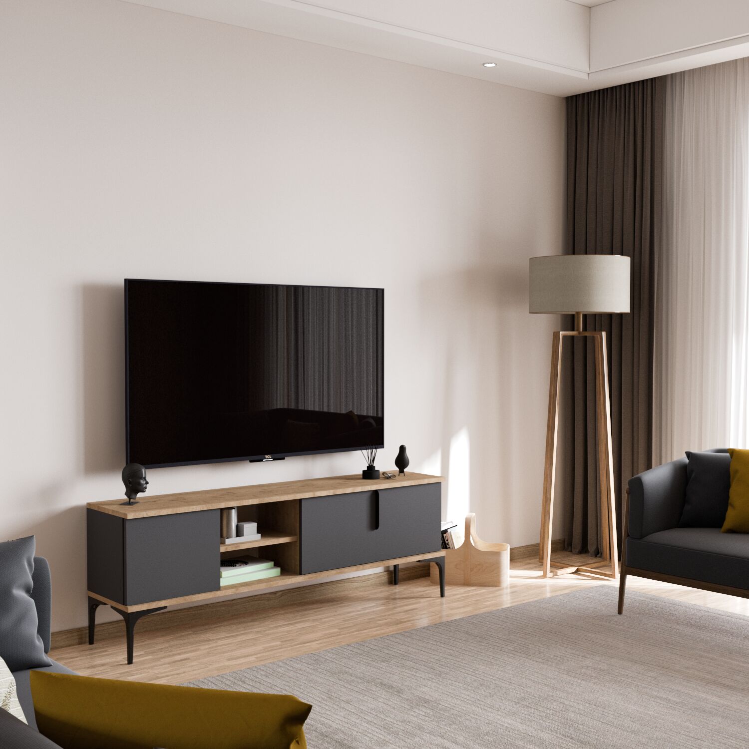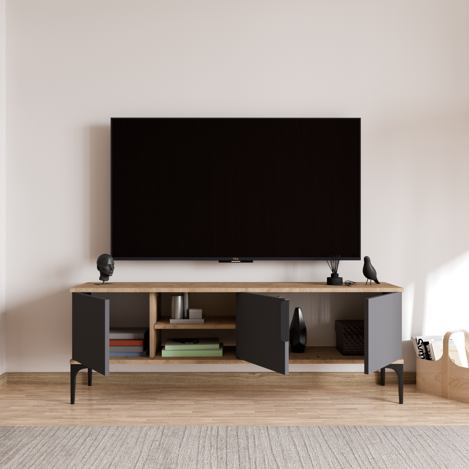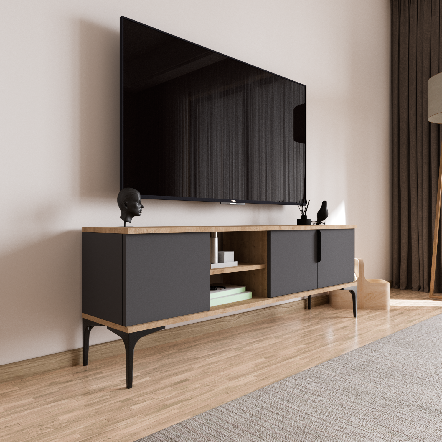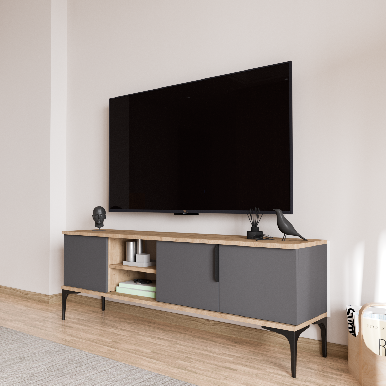 Tarz 150 cm TV Ünitesi – Sepet Gövde & Antrasit Kapak