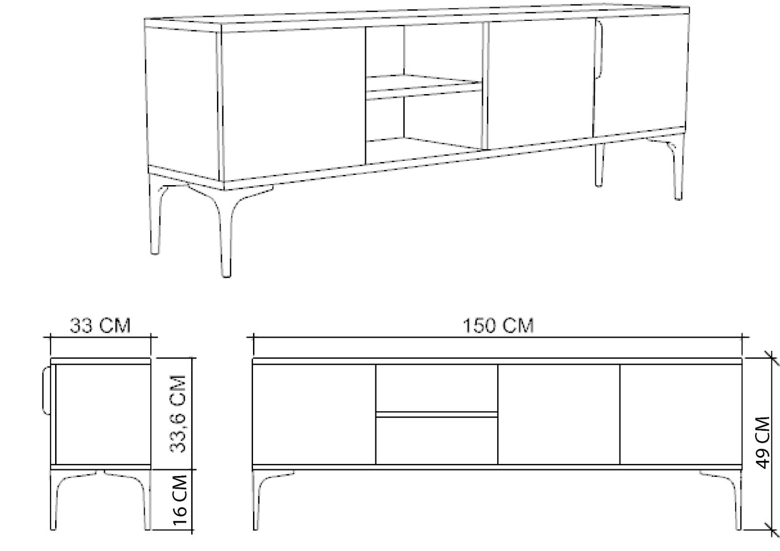 Kompakt ve Kullanışlı Ölçüler:150 cm genişliğiyle hem küçük hem orta ölçekli yaşam alanlarına uygundur. 33 cm derinliği sayesinde fazla yer kaplamaz, minimal dekorasyonlara uyum sağlar.