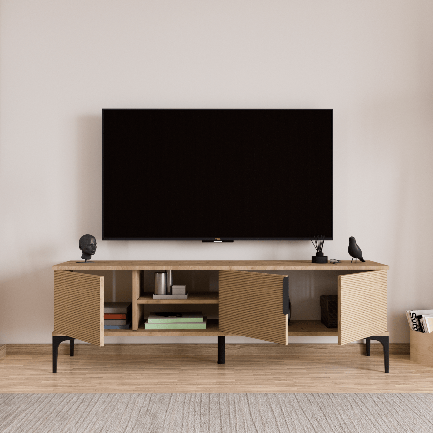 Tarz 150 cm TV Ünitesi – Sepet Gövde & Antrasit Kapak